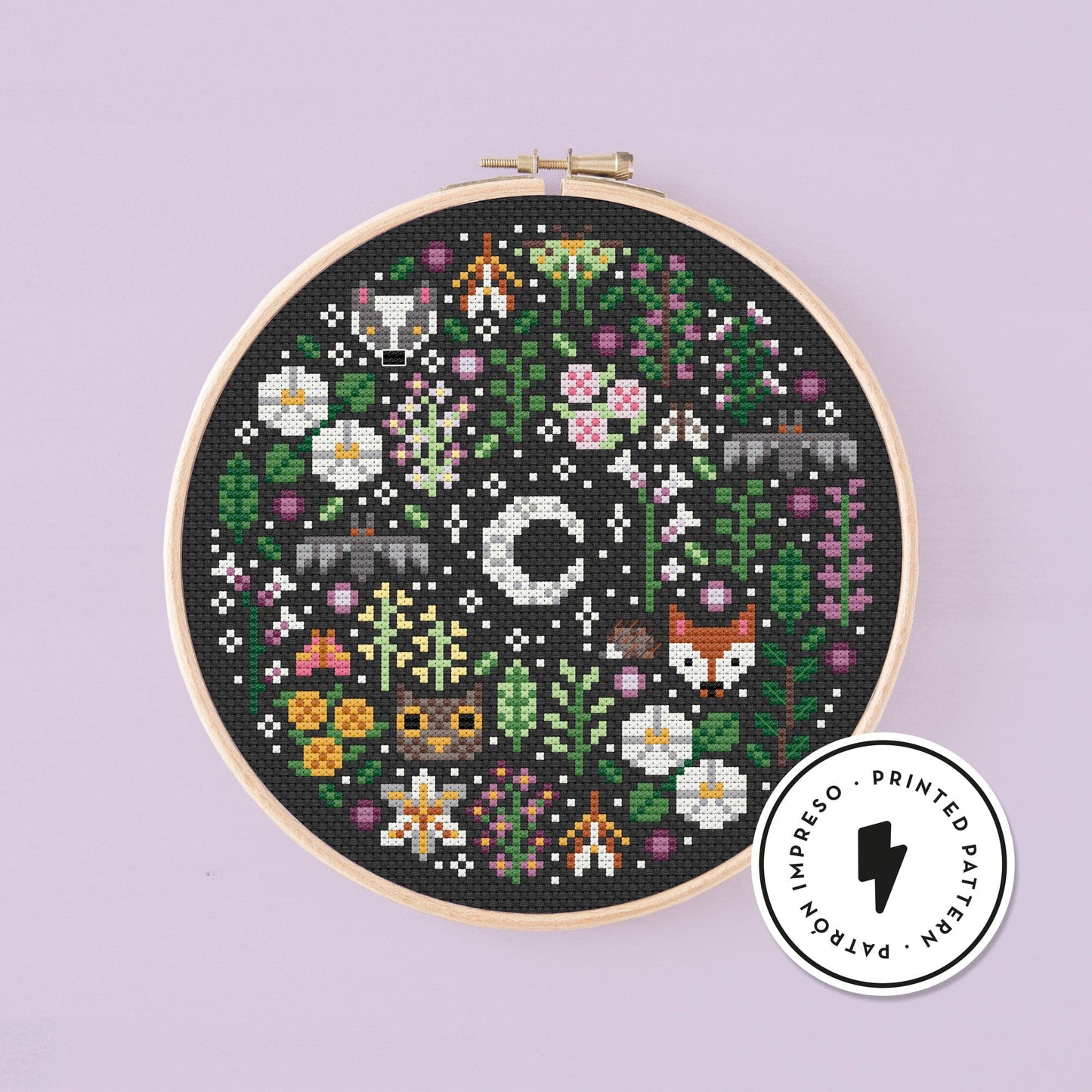 Date un paseo por este húmedo y fresco jardín nocturno y relájate bordando todos sus rincones. Esta versión mini es un proyecto que quedará perfecto enmarcado en un aro de bordar de 20 cm.