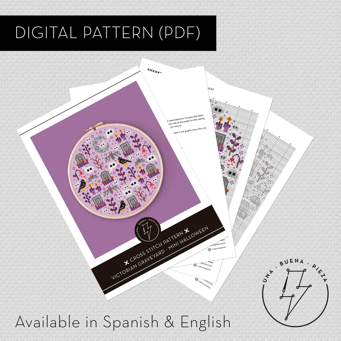 Digital cross stitch pattern. Take a walk through the old Victorian cemetery and discover all its secrets. If you love the Halloween Garden but are looking for a smaller project, this is the pattern for you! It's also great for beginners.