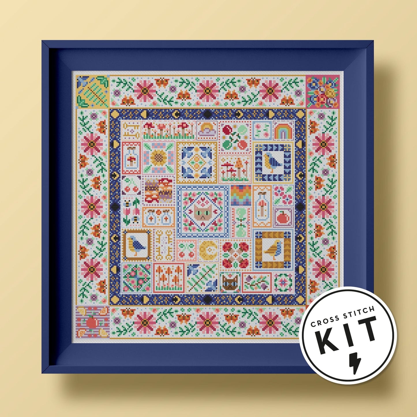 Cross stitch kit to embroider a sampler inspired by patchwork and vintage cross stitch. The result of embroidering the Patchwork Secret Garden - Cross Stitch Kit is an impressive work in which modernity, tradition and nature come together in a colorful and very beautiful embroidery.