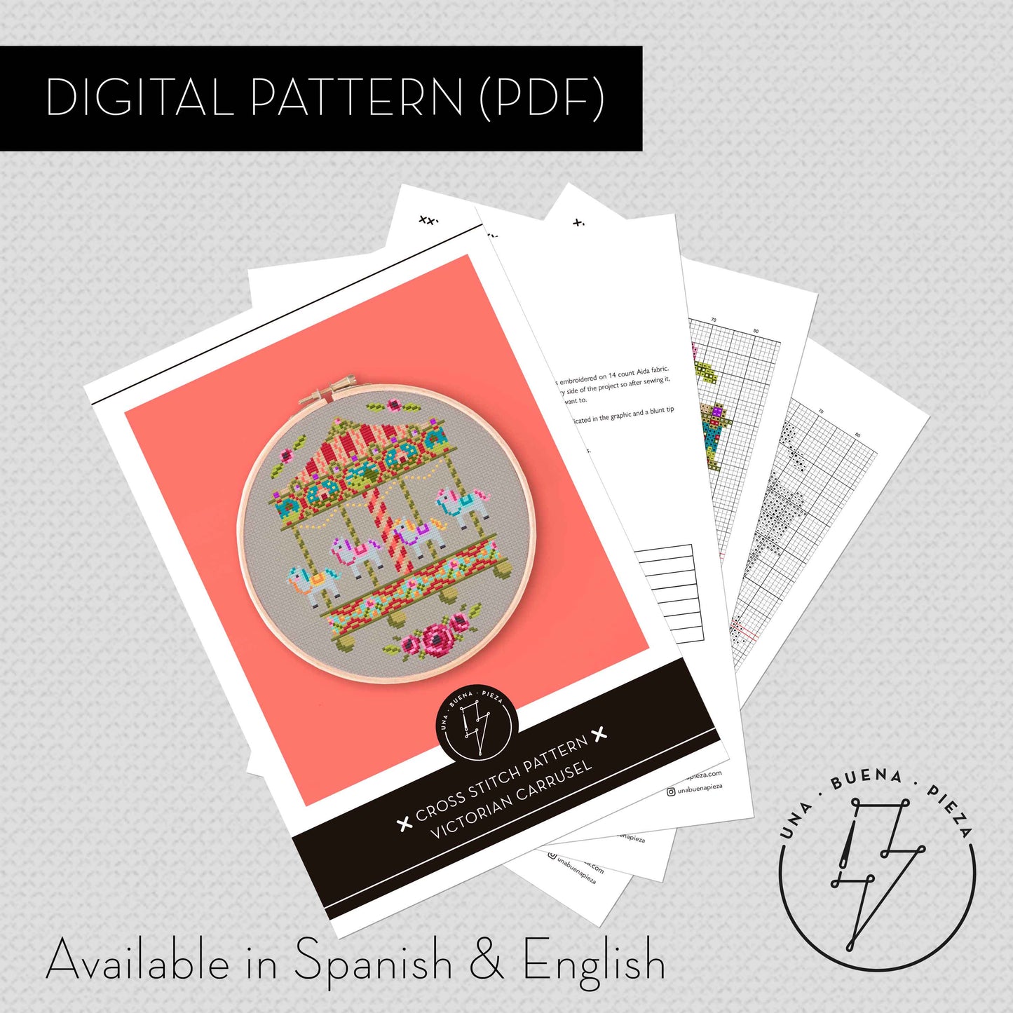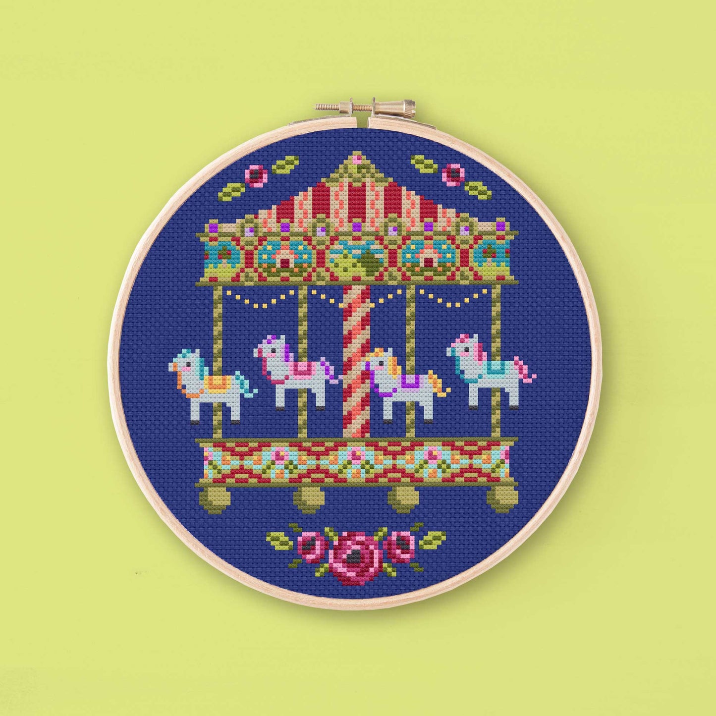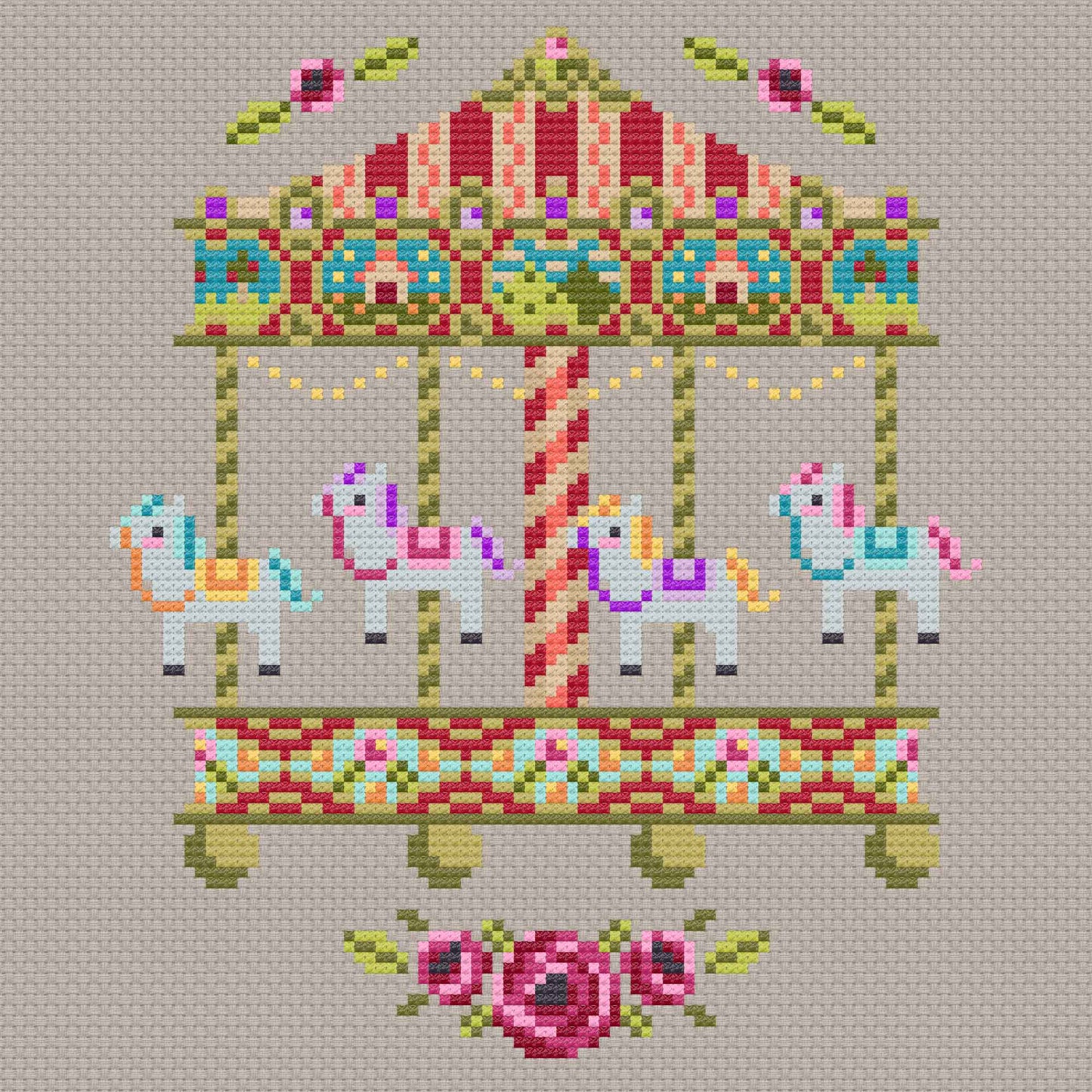 Inspired by antique merry go rounds and fairs, this cross stitch project will take you back to your childhood. To the smell of candy clouds and apples. Get ready for a ride in this delicate and ornate vintage carousel.