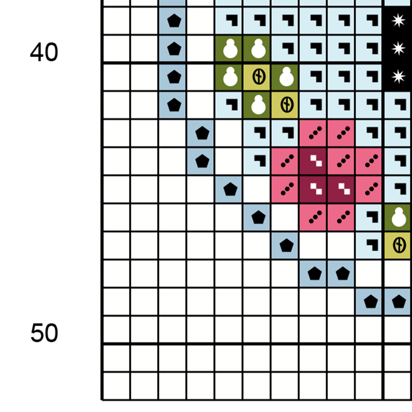 - Size: 26x48 stitches (4,7 x 8,7 cm / 2 x 3.4 inches if embroidered on 14 count Aida)