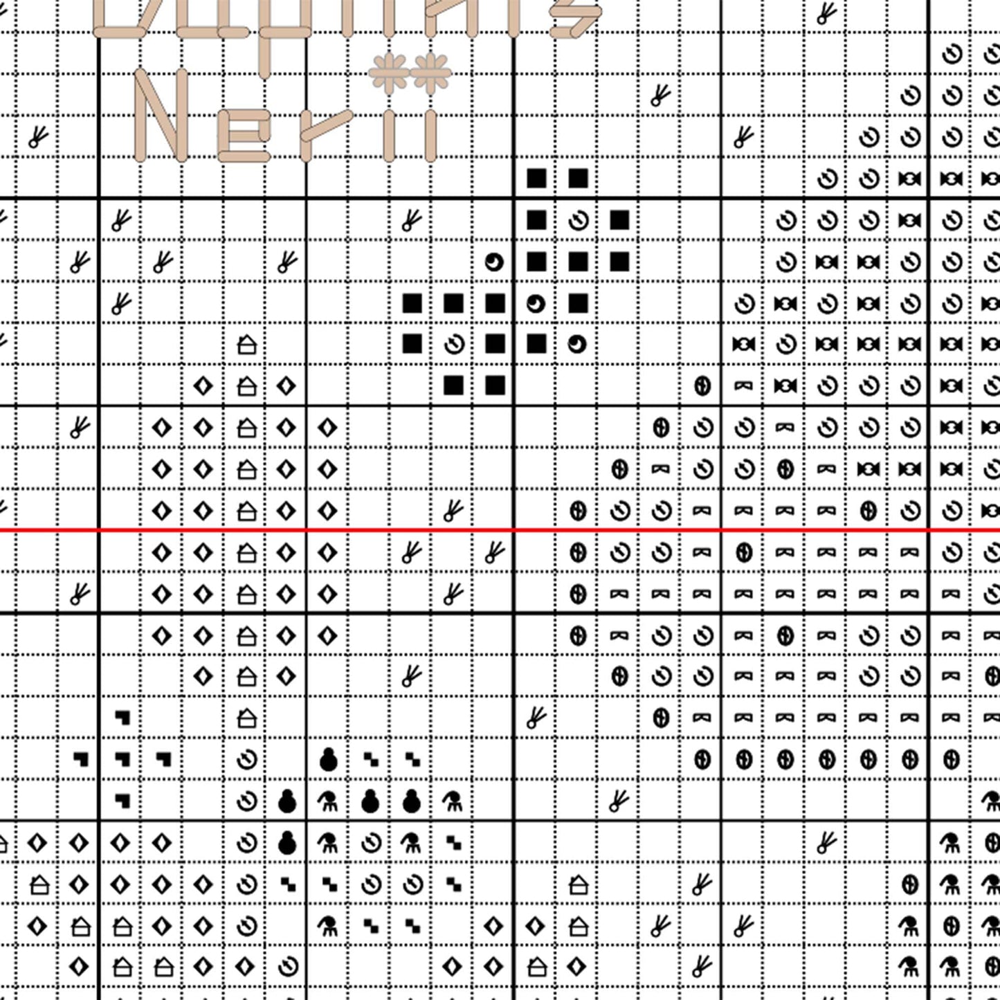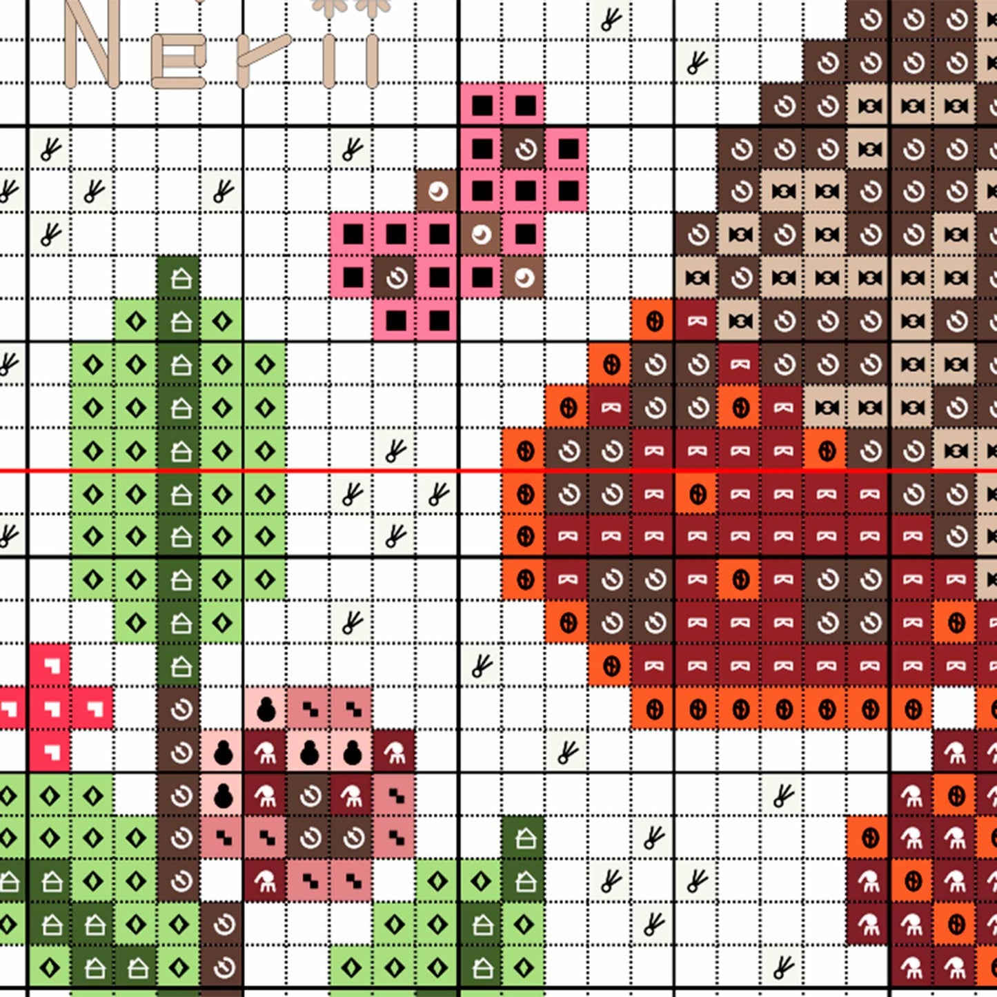 Tamaño: 110x110 puntos (20x20 cm bordado en tela Aida de 14ct)