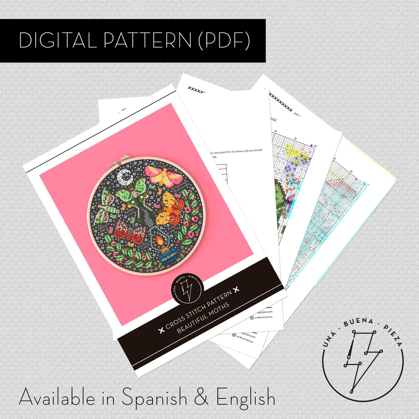 El Esquema a Punto de Cruz en PDF - Polillas Bonitas incluye: