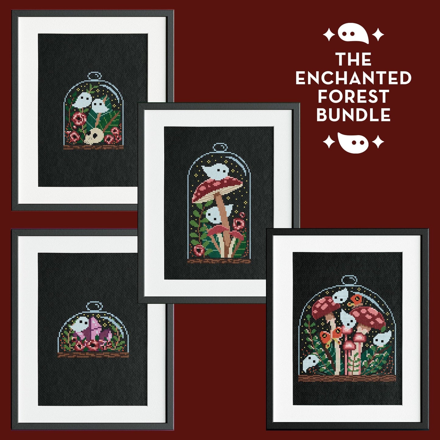 Set de 4 Esquemas de Punto de Cruz - Bosque Encantado