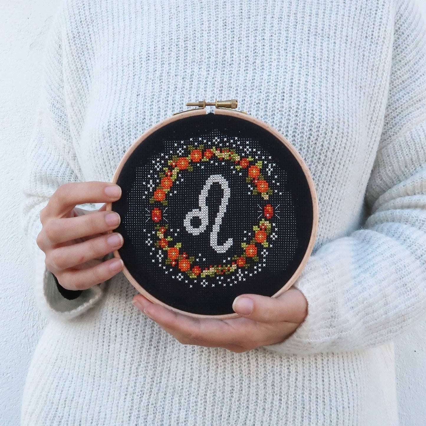 Leo - Horóscopos Florales - Kit de Punto de Cruz