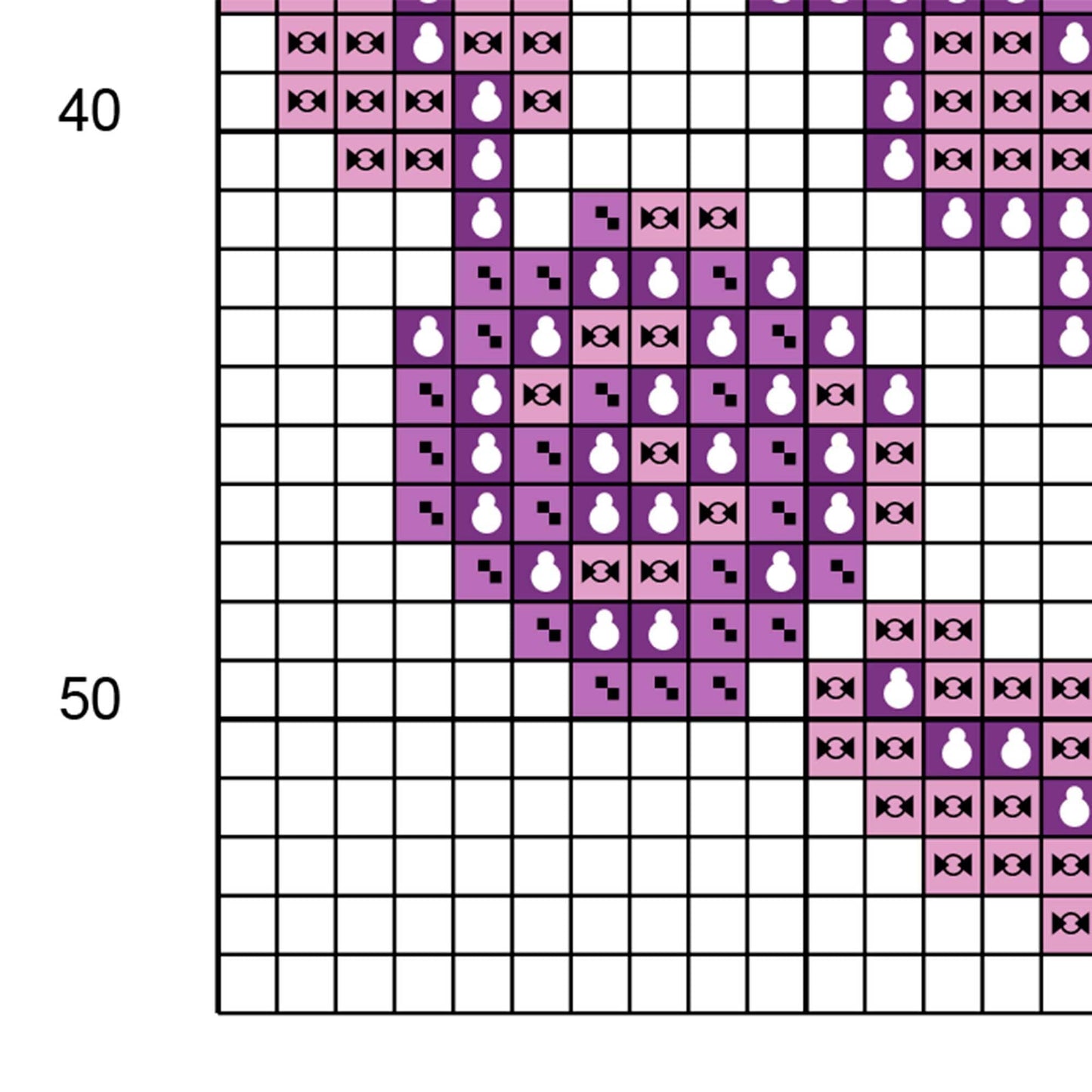 - Tamaño: 55x55 puntos (10x10 cm bordado en tela Aida de 14ct)