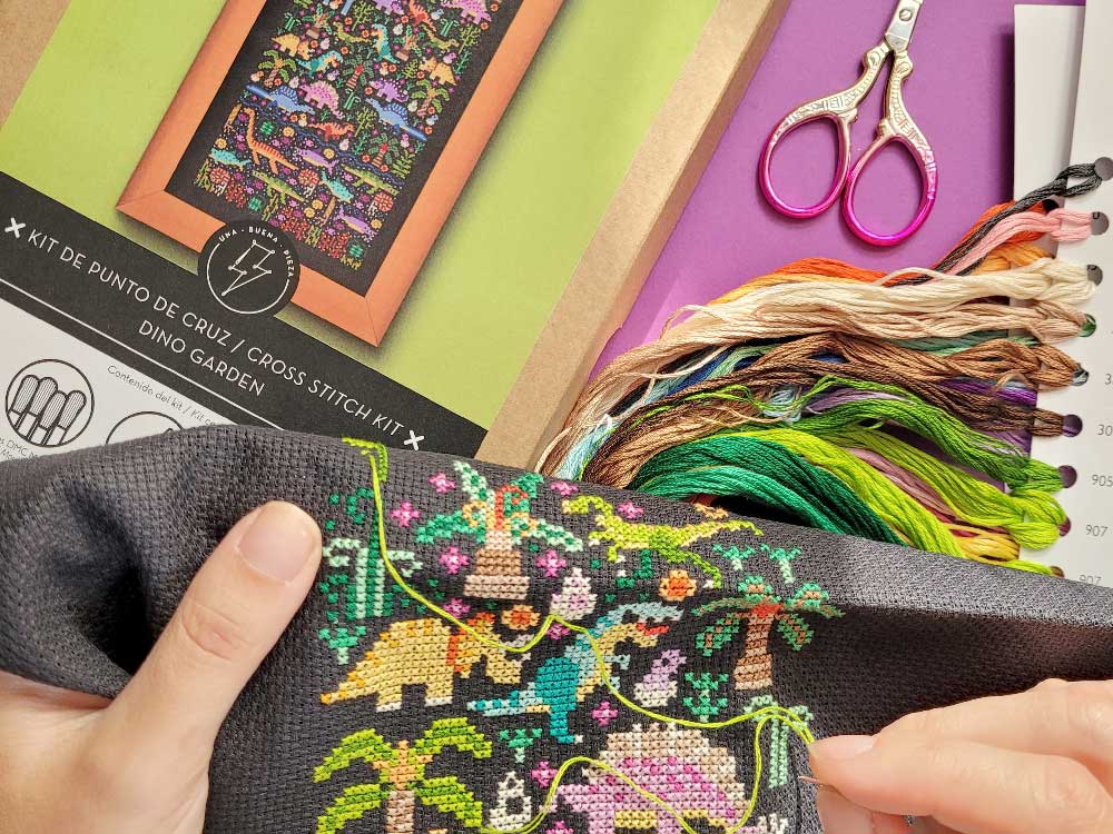 - Una mini guía impresa con instrucciones sobre cómo bordar a punto de cruz