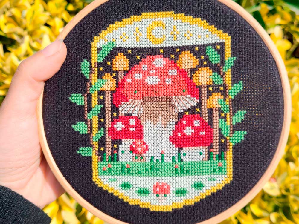 - Tamaño: 60x60 puntos (11x11 cm bordado en tela Aida de 14ct)